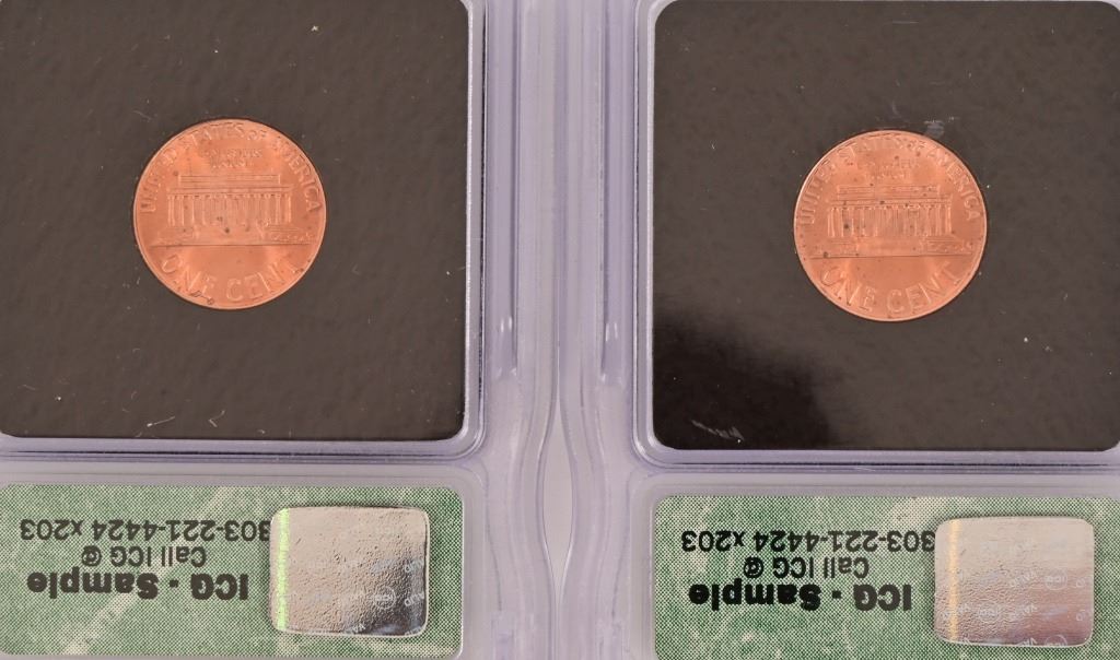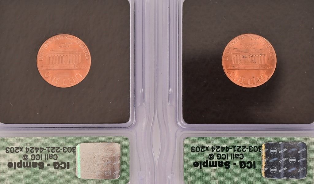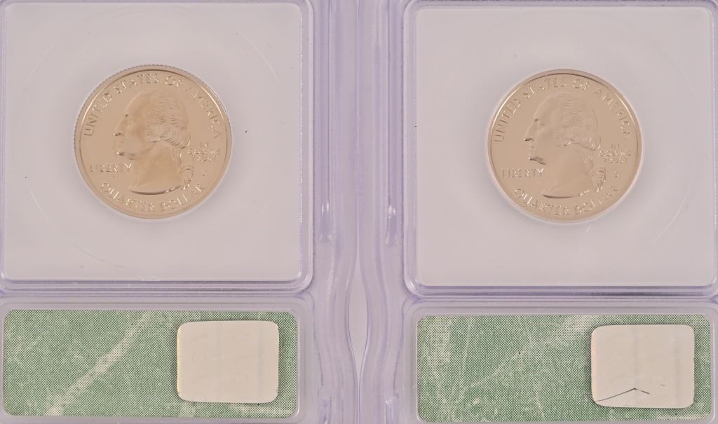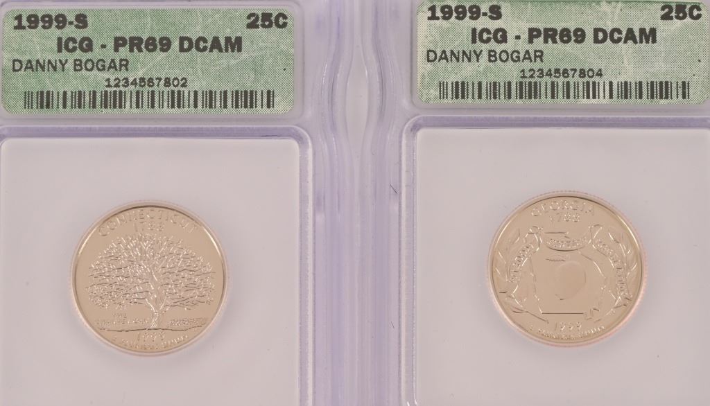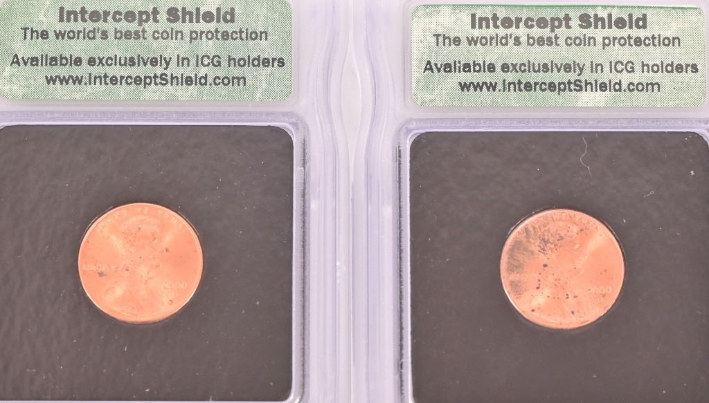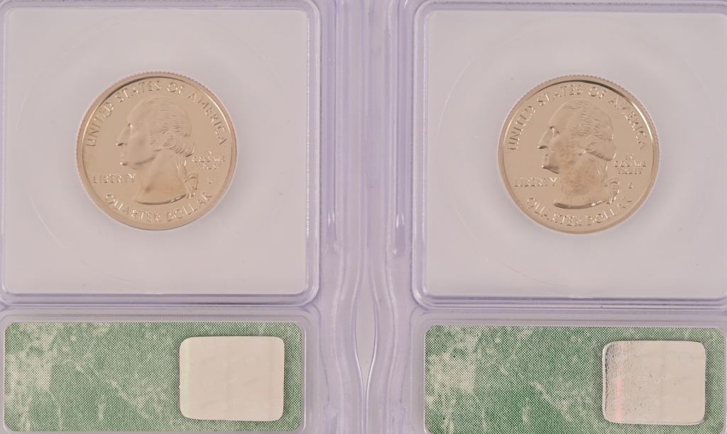 Collection of (4) 2000-D Lincoln Memorial Penny Intercept Shield ICG Sample Slab (10) PR 69 ICG US State Quarters (1999-2000) 5 of each.