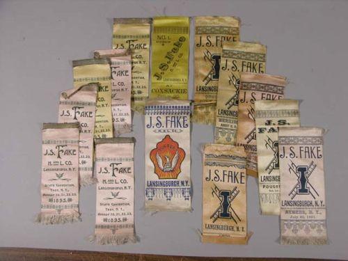 14 J.S. Fake fireman's ribbons, Lansingburgh, NY - various dates. Ex. cond.