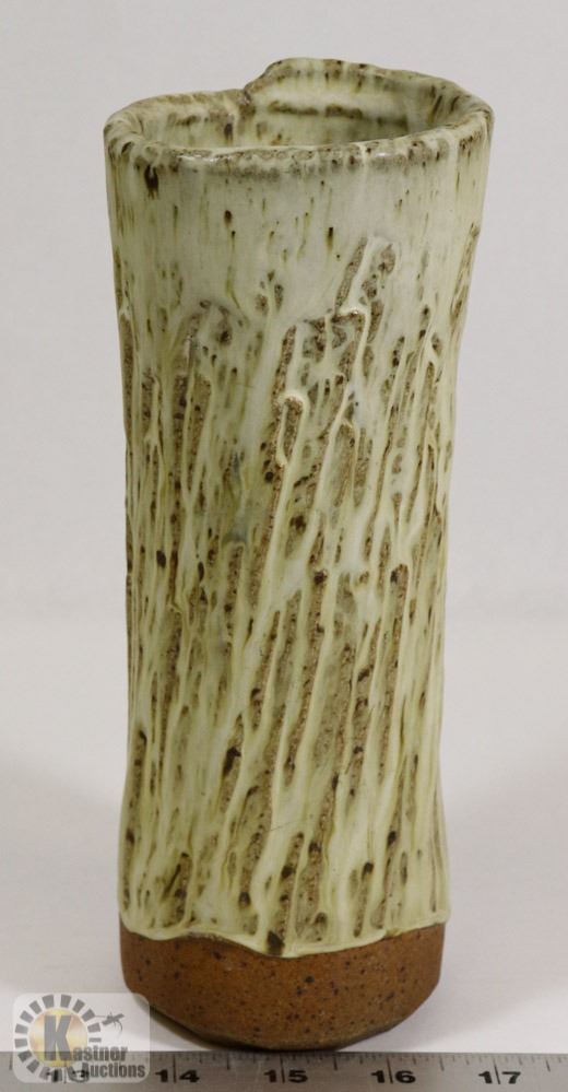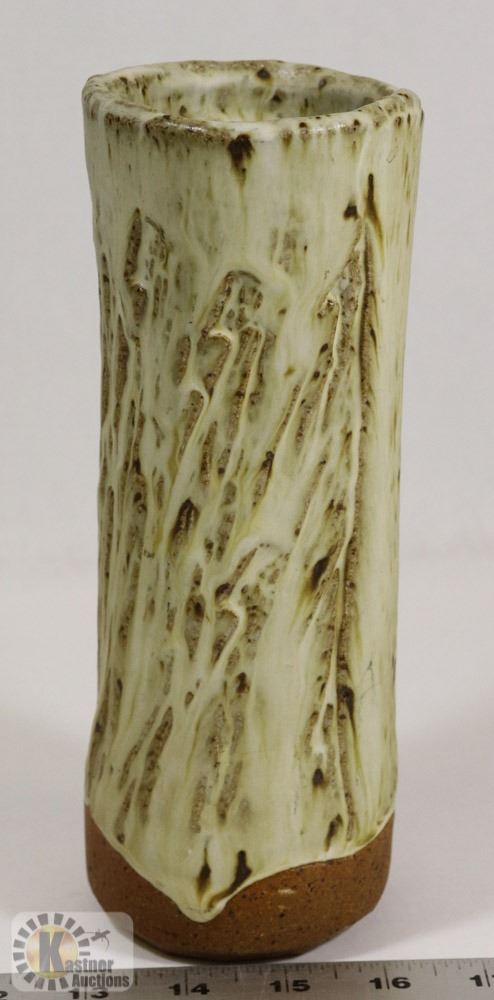 14) JANO LETTS SIGNED TEXTURED CERAMIC VASE,