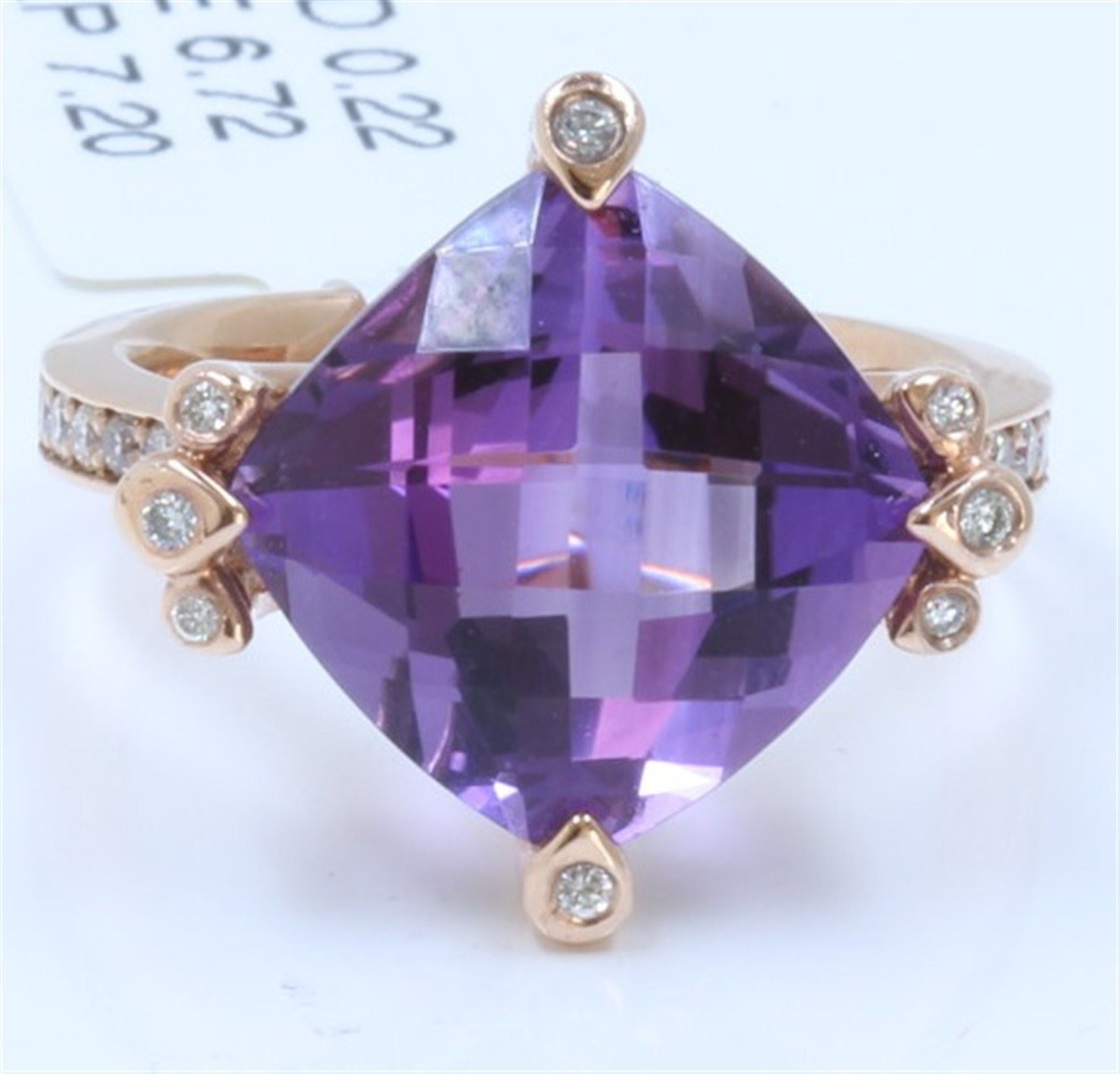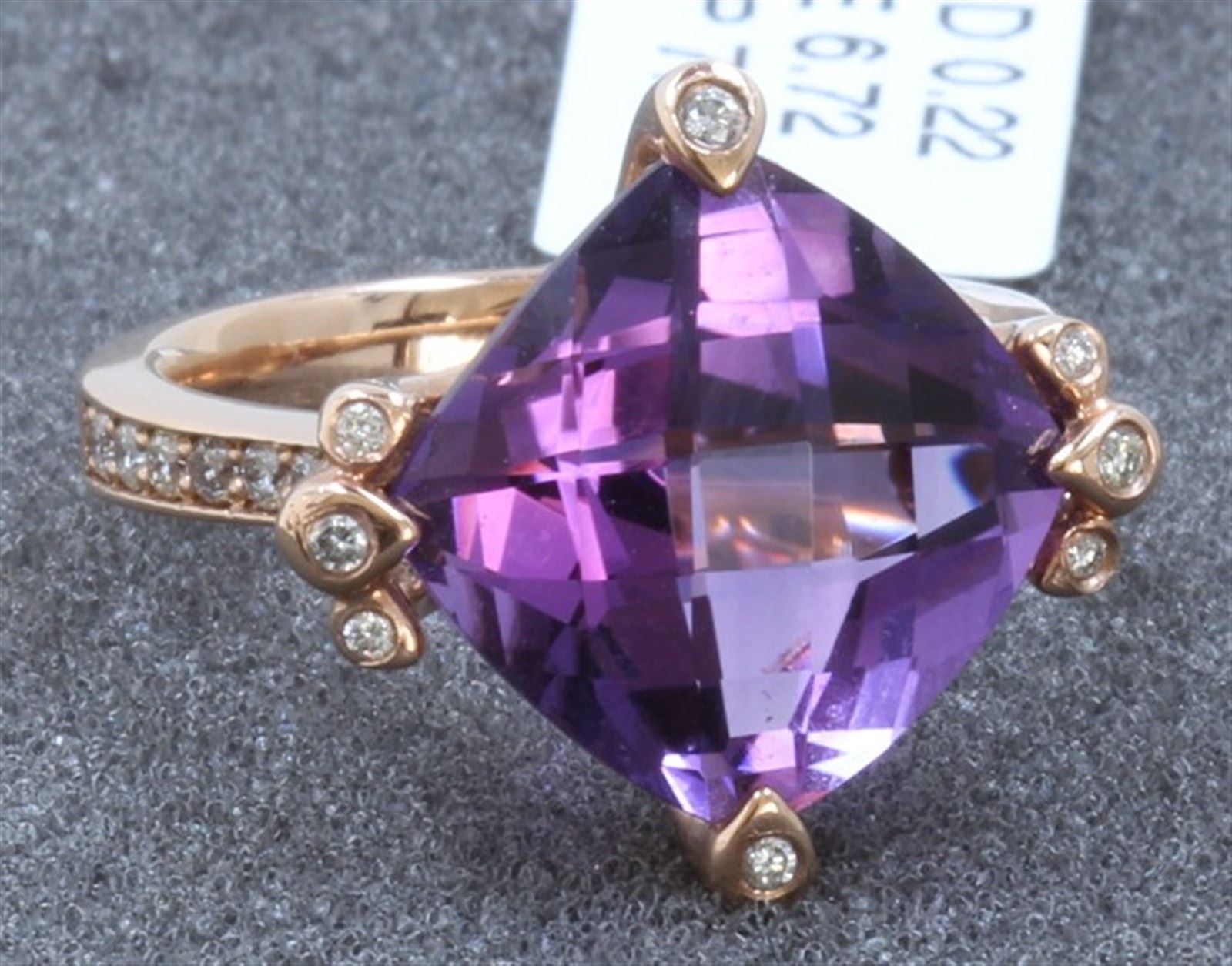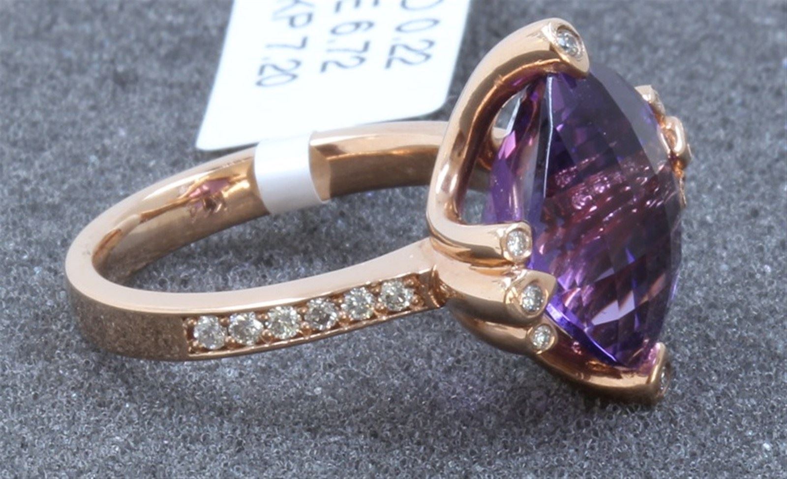 14 K ROSE GOLD AMETHYST RING:7.20 GRAMS/DIAMOND:0.22CT/AMETHYST:6.72CT/#R8010