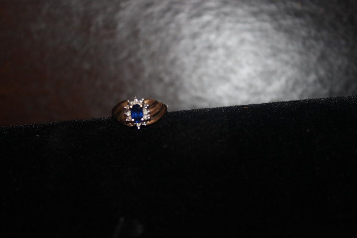 14 K WITH BLUE STONE AND DIAMOND CHIPS