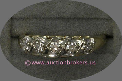 14 K YELLOW GOLD LADIES DIAMOND RING SET WITH FIVE (5) ROUND BRILLIANT CUT DIAMONDS .15 CT. 1.8 GRAMS.