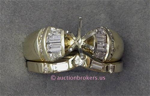 14 K YELLOW GOLD LADIES DIAMOND WEDDING RING (MOUNT ONLY) AND GUARD SET WITH ROUND BRILLIANT CUT AND BAGUETTE CUT DIAMONDS 2.0 CT. 9.6 GRAMS. 9.6 GRAMS.