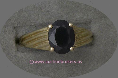 14 K YELLOW GOLD LADIES GEMSTONE RING SET WITH AN OVAL CUT BLUE SAPPHIRE APPROXIMATELY 2.0 CARAT TOTAL WEIGHT. 4.2 GRAMS.