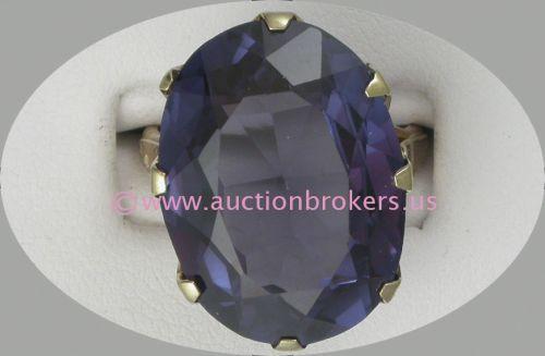 14 K YELLOW GOLD LADIES GEMSTONE RING SET WITH ONE OVAL CUT AMETHYST APPROXIMATELY 6 CTS. RING SIZE