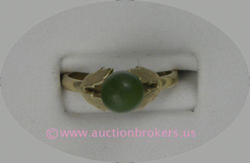 14 K YELLOW GOLD LADIES GEMSTONE RING SET WITH ONE ROUND-SHAPED JADE STONE APPROXIMATELY 6.2 MM ROUND. RING SIZE 6. 2.4 GRAMS.