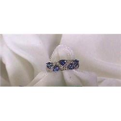 14 KT. WHITE GOLD, DIAMOND AND TANZANITE RING, the diamonds totaling approximately .06 cts., the tanzanites totaling approximately 1.20 cts. (Size 7.25)