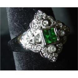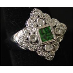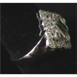 14 KT. WHITE GOLD GARNET & DIAMOND FASHION RING.