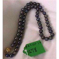 14 KT. YELLOW GOLD AND GREY PEARL NECKALCE; 16 inch length