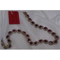 14 KT. YELLOW GOLD, DIAMOND AND RUBY NECKLACE, the diamonds totaling approximately 4.90 cts., the rubies totaling approximately 30.24 cts., accompanied by an AIG report no. 019902231008; 16 inch length