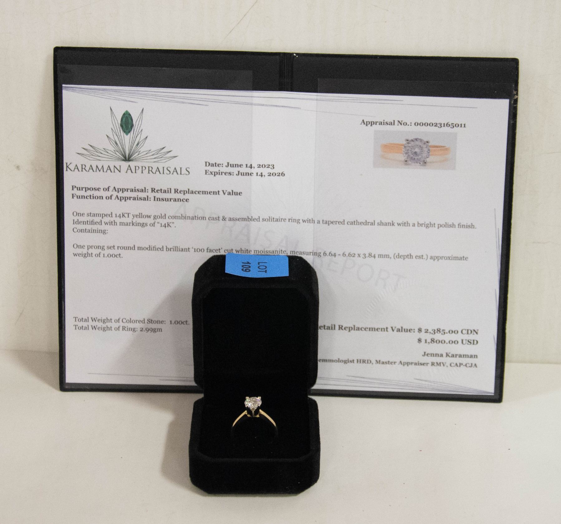 MOISSANITE VVS D SIZE 6 APPRAISED $2385.00 **ALL ITEMS MUST BE REMOVED BY 5PM SATURDAY, JULY 29TH 2023. ALL REMAINING ITEMS WILL BE SUBJECT TO A $6.00 PER DAY STORAGE CHARGE. ANY ITEMS REMAINING AFTER MONDAY, AUGUST 14TH, 2023 WILL BE CONSIDERED FORFEITED. NO REFUNDS WILL BE ISSUED FOR FORFEITED ITEMS. TO SCHEDULE A PICK UP APPOINTMENT CLICK HERE