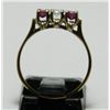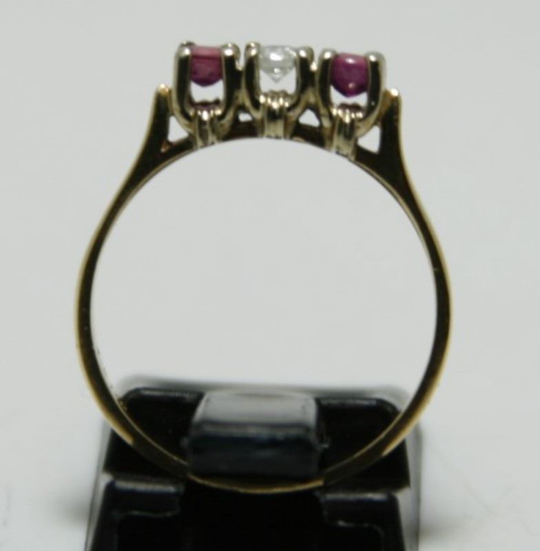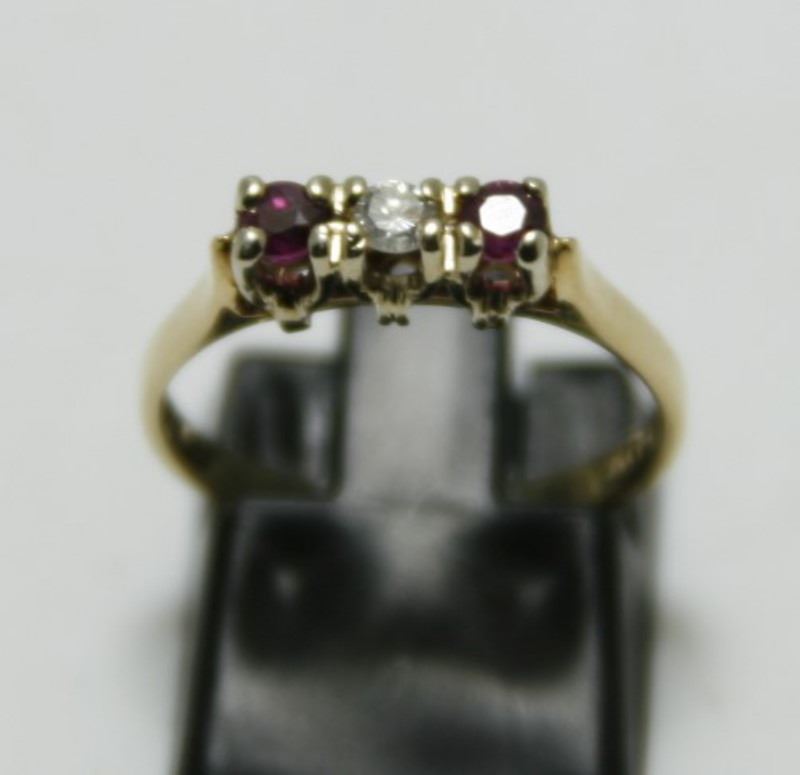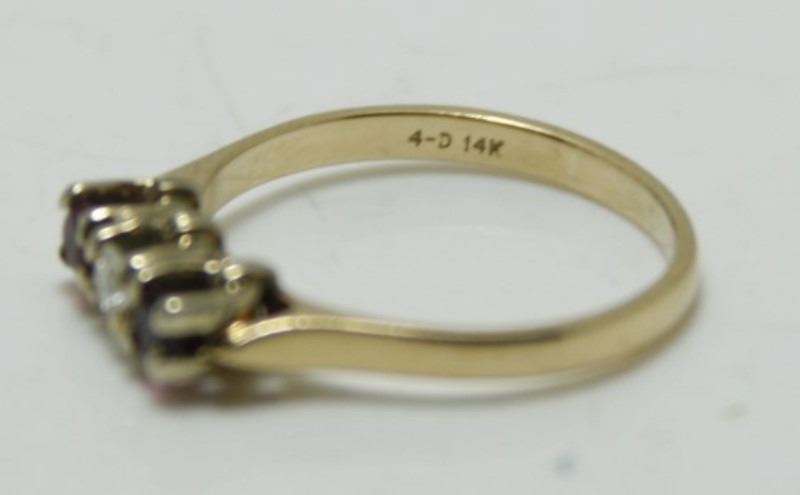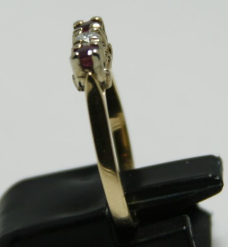 14 Kt Yellow Gold Diamond & Ruby 3 Stone Ring - Size 6 1/2