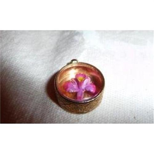 <tr><td>Title:14 Karat Gold Charm Encasing an Enamel Orchid</td></tr>