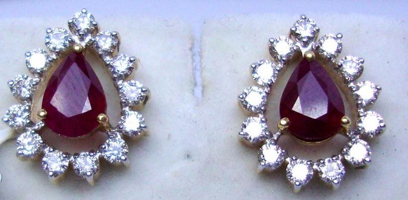 14 Karat White Gold and Ruby and Diamond Earrings 5.17 Grams Weight, .91 Carat Diamonds and .85 Carat Ruby