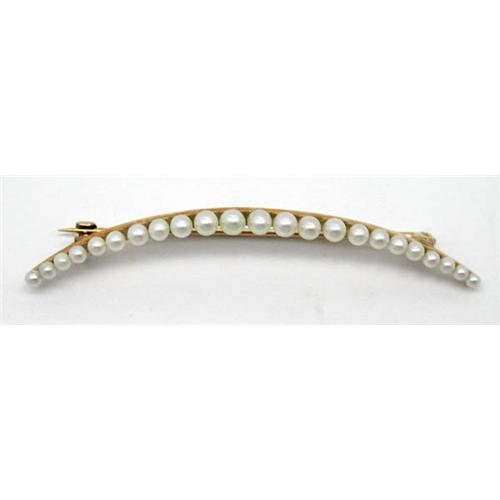 Delicate pin in the shape of a half moon with graduated tiny natural pearls. 2 1/4"L