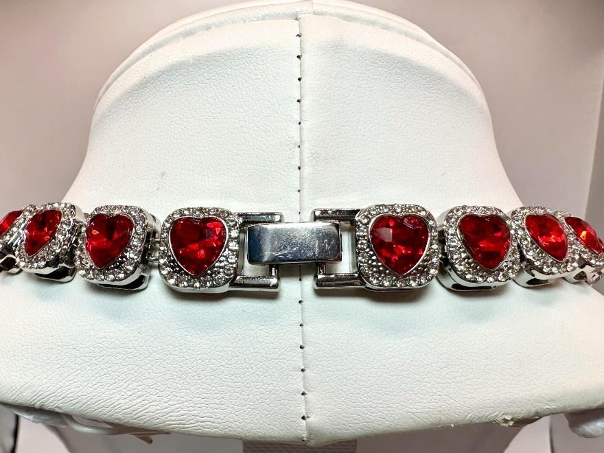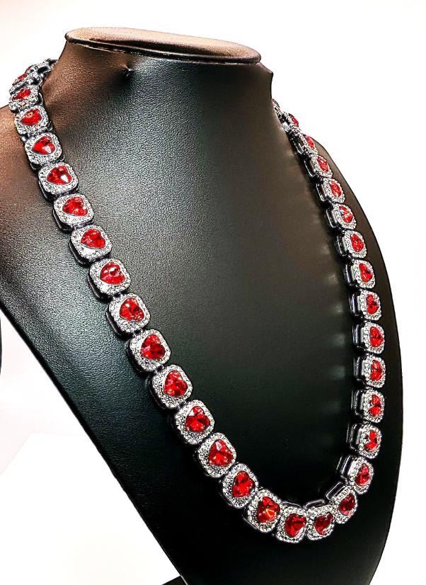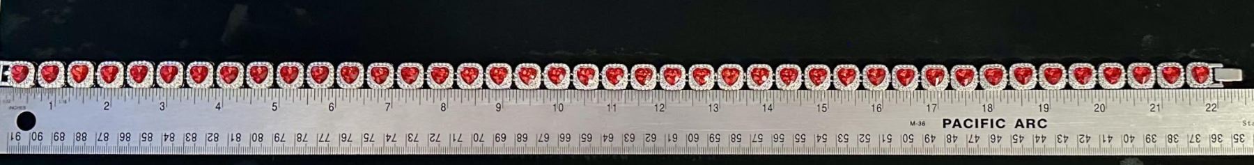 Gorgeous 74 Ct Lab Simulated Red Ruby and Diamond 14 K White Gold-Plated Tennis Necklace. These Lab Simulated Gemstones Are All Eye Clean and Mounted In 14 Kt White Gold Plate. Approx. 22" Long and 12 mm. wide, A healthy 98.3 Total Grams or 491.50 Cttw. Absolutely Stunning and Unique Style.