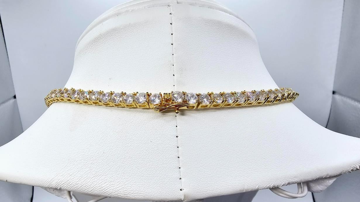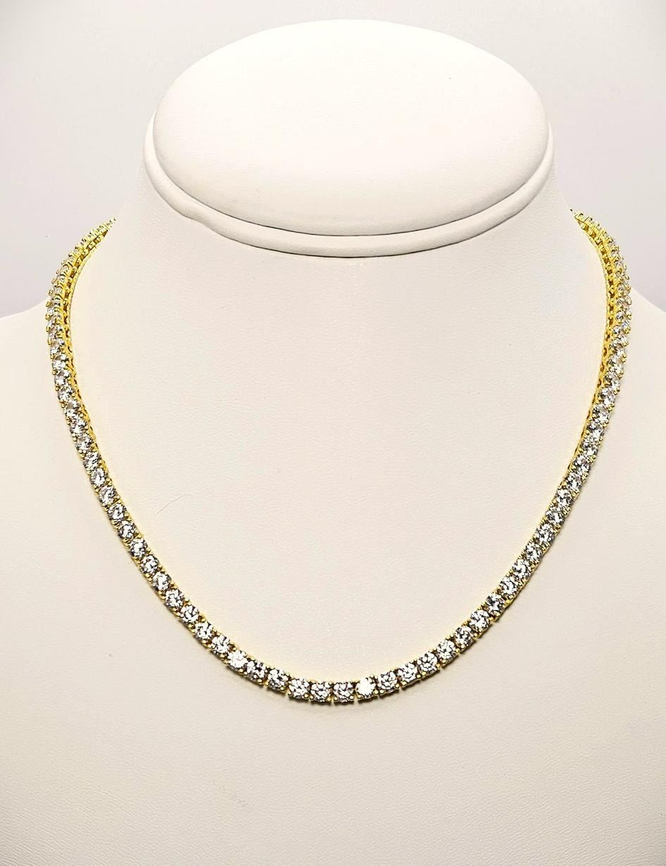 14 Kt Yellow Gold Plated 18.5 Cttw Lab Simulated Diamond Tennis Necklace