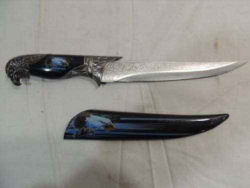 14"L STAINLESS STEEL KNIFE, SHEATH & HILT EAGLE DESIGN. AS SHOWN. VIEW PICTURE FOR DETAIL.