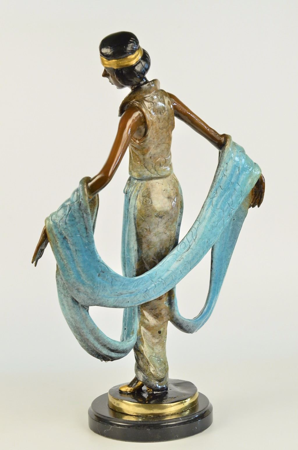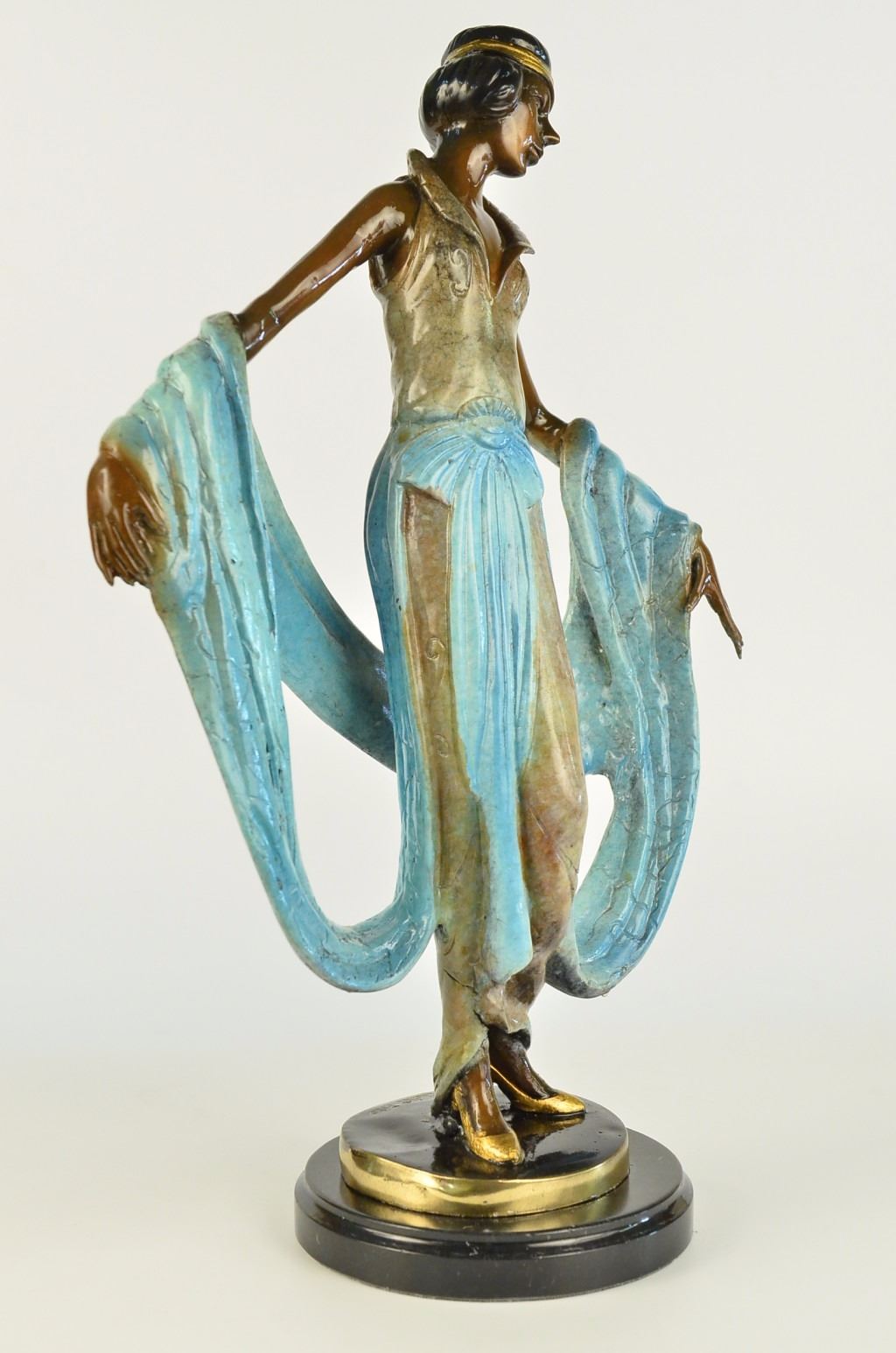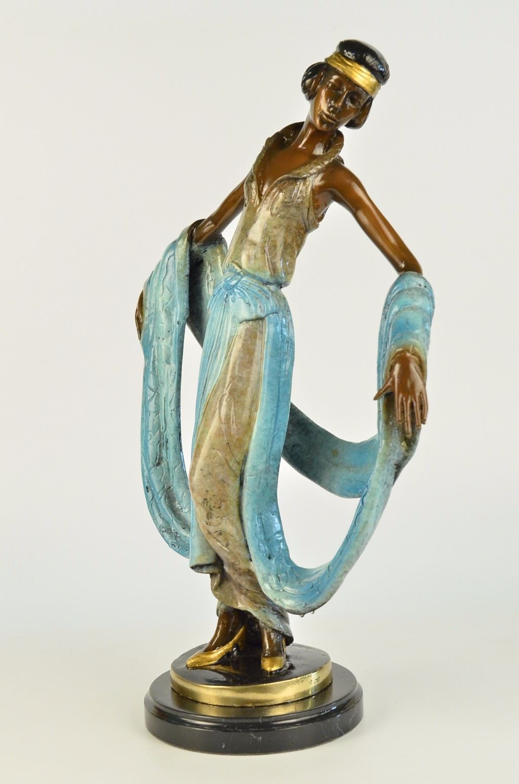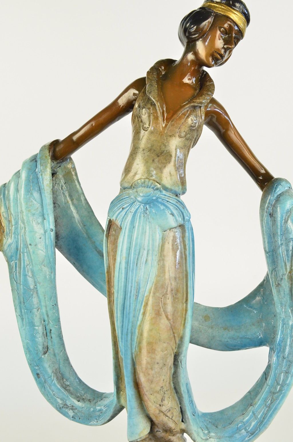 14 LBS Multi Color Patina Hot Cast Ribbon Dancer Bronze Sculpture (19"X13")
