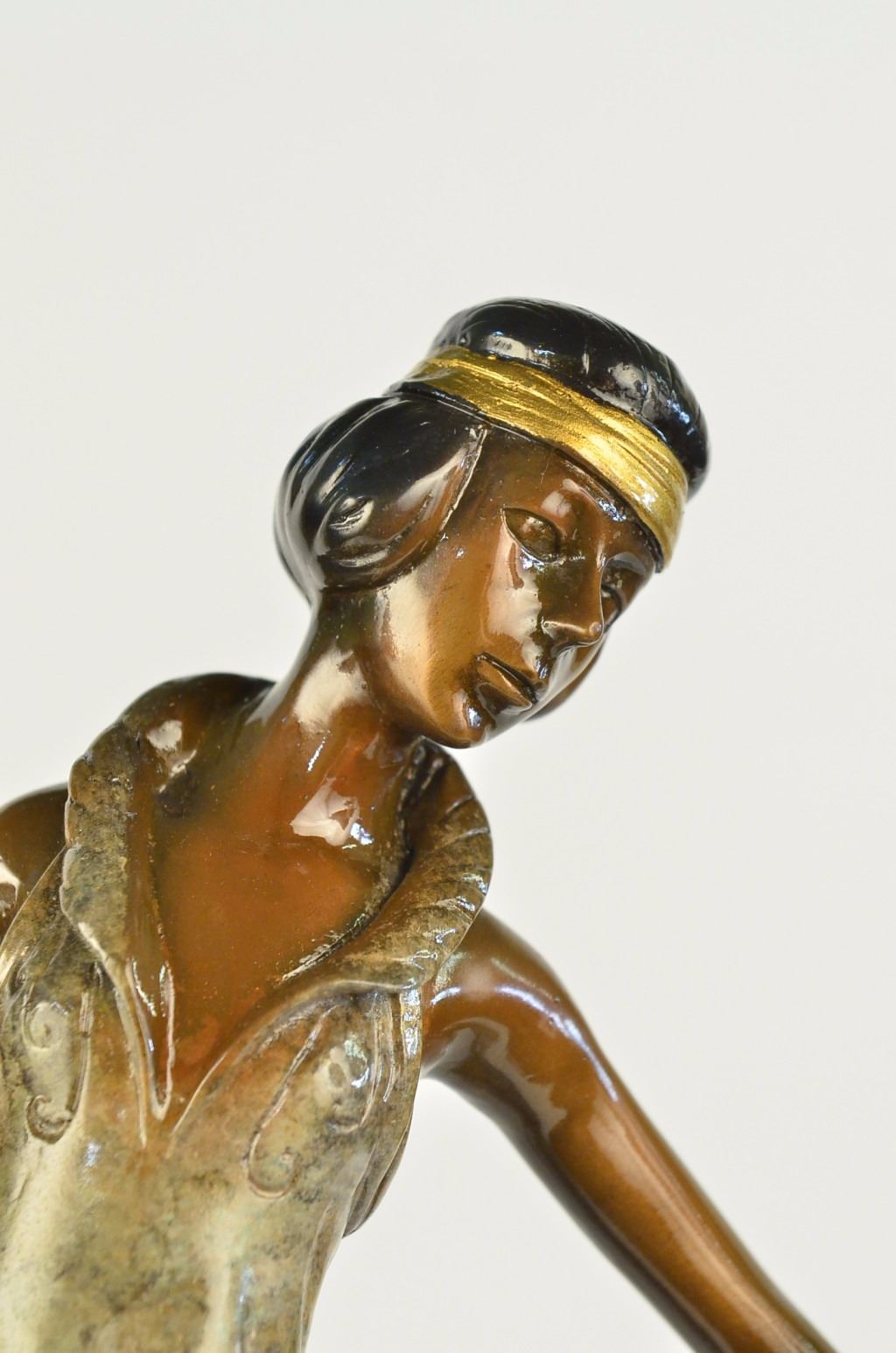 This Graceful Bronze Princess Is Exquisitely Handmade Complete With Egyptian Symbols Reflecting The Period'S Fascination With The Excavation Of Tutankhamen'S Tomb. The Base Forms A Natural Pairing To The Sculpture Becoming Part Of The Design And Form. She Wears A Headdress Of Extravagant Metal And Jewels. She Wears Belt Decorating Her Long Gown, Exposing Her Slender Body, And The Most Beautifully Detailed Skirt. The Skirt Falls Long To Her Knees, She Wears A Scarf Type Cover Up For Her Head And Nice Calve High Boots. Handmade Of 100% Bronze And Cast Using The Ancient "Lost Wax Method". Multi Color Special Patina Finish On A Solid Black Marble Base. Bronze Dimensions With Marble Base: Height 19 X Width 13 inches. Weight: 14 Lbs.