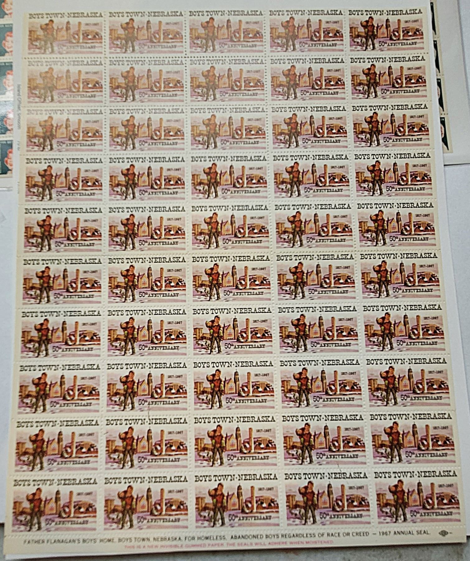 POSTAGE STAMPS INCLUDING: NORMAN ROCKWELL FOR BOYS TOWN, NEBRASKA 1965, ASTHMATIC CHILDRENS NATIONAL FOUNDATION & BOYS TOWN 50TH ANNIVERSARY (1917-1967). COLLECTIBLES