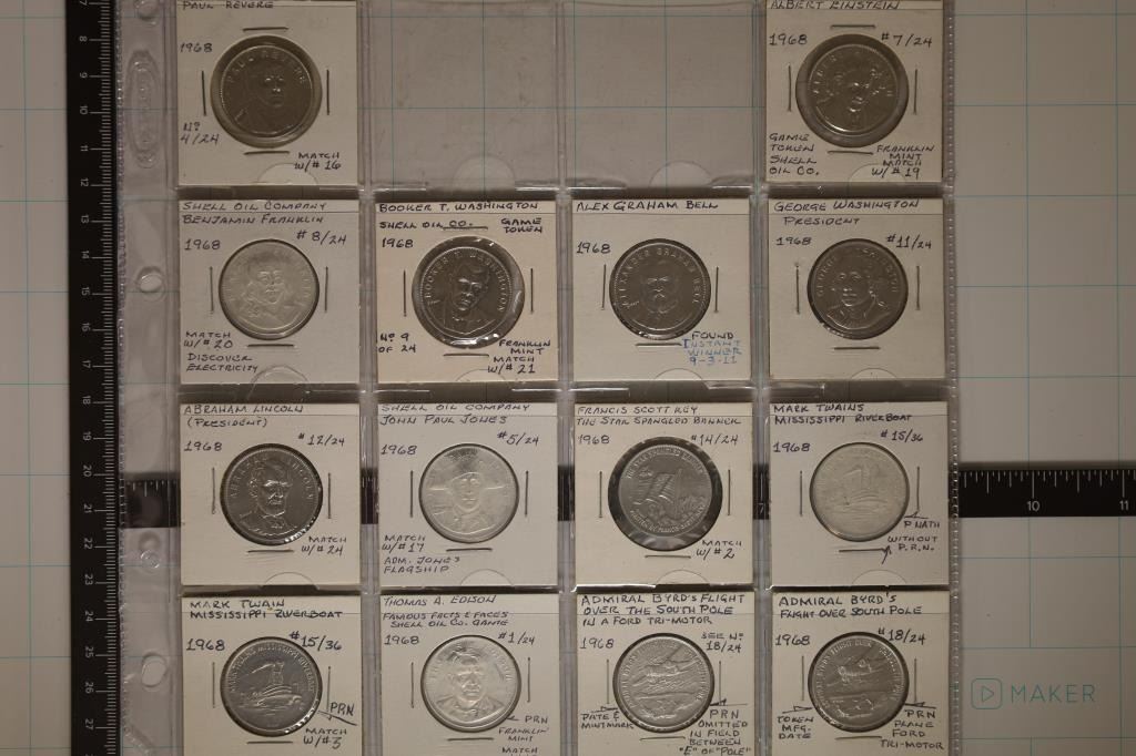 MARK TWAIN, ABRAHAM LINCOLN, PAUL REVERE AND OTHERS. THESE WERE PUT OUT BY THE SHELL'S GASOLINE