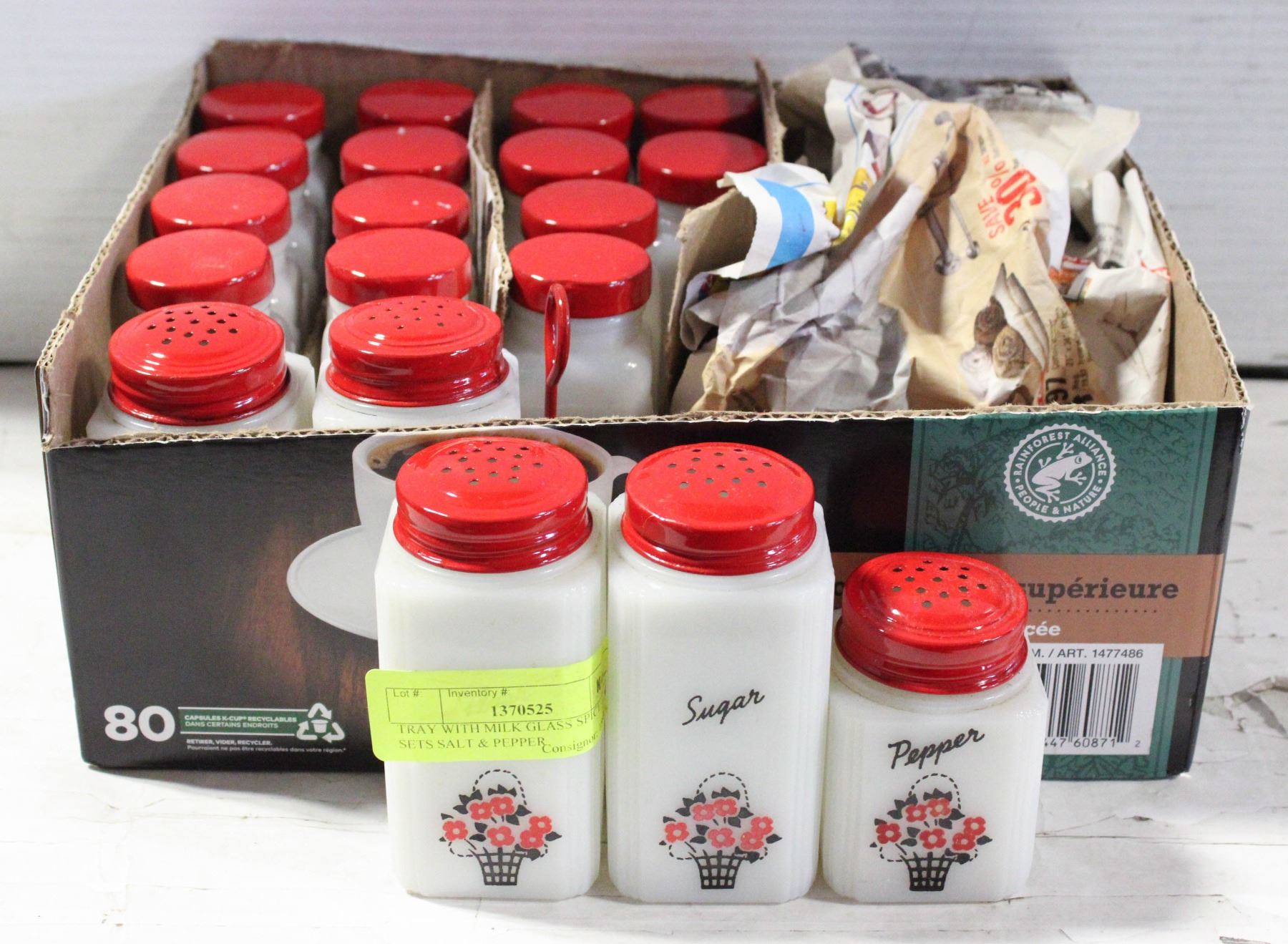 14 MILK GLASS SPICE BOTTLES - GRIFFINS
