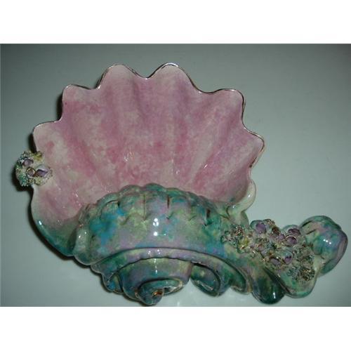 <tr><td>Title:14" Majolica Shell with coral & barnicle</td></tr>