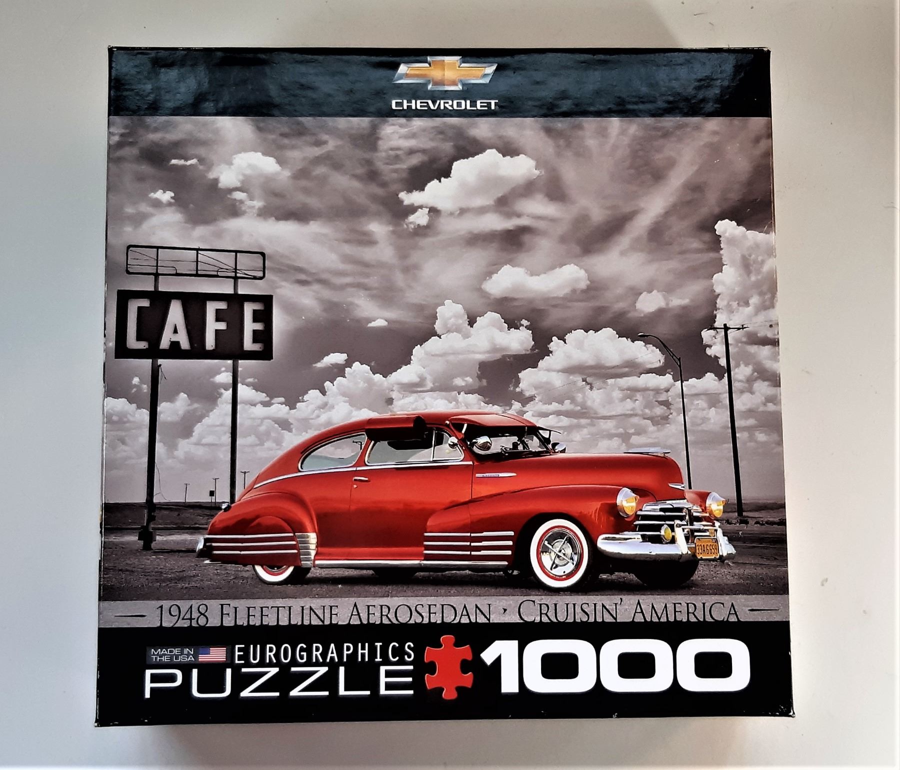 1000 PIECE CHEVROLET 1948 FLEETLINE AEROSEDAN PUZZLE, FINISHED PIECE IS 19.25" X 26.75". TOYS