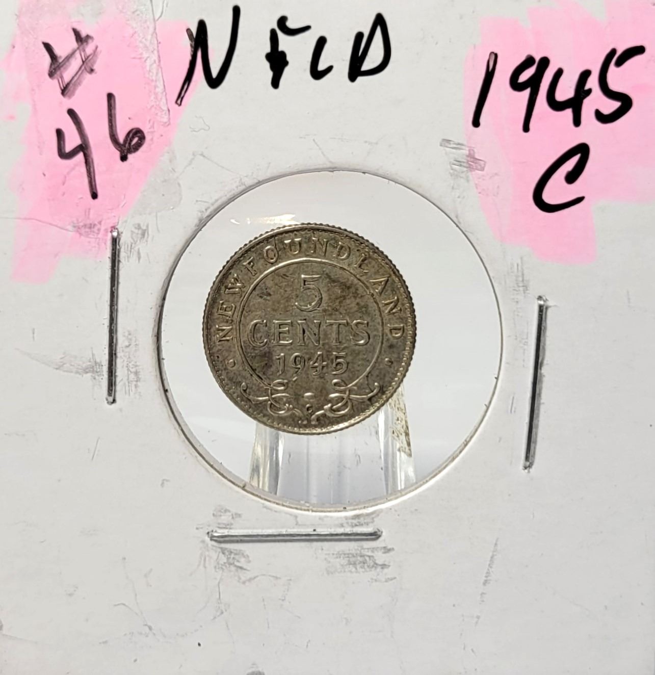 14) NEWFOUNDLAND 1945C NICKLE, 80% SILVER.
