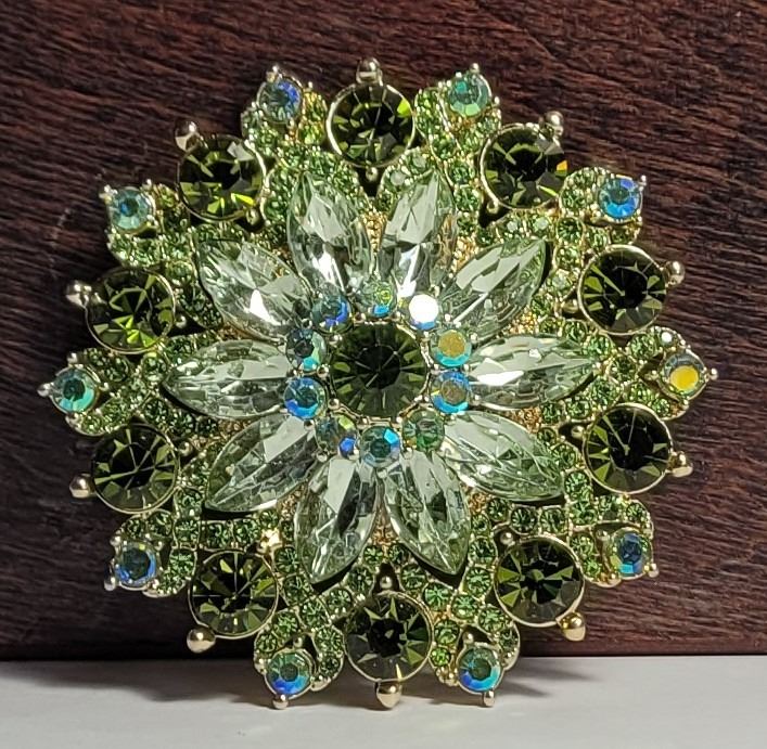 GREEN CRYSTALS FLOWER BROOCH. JEWELERY