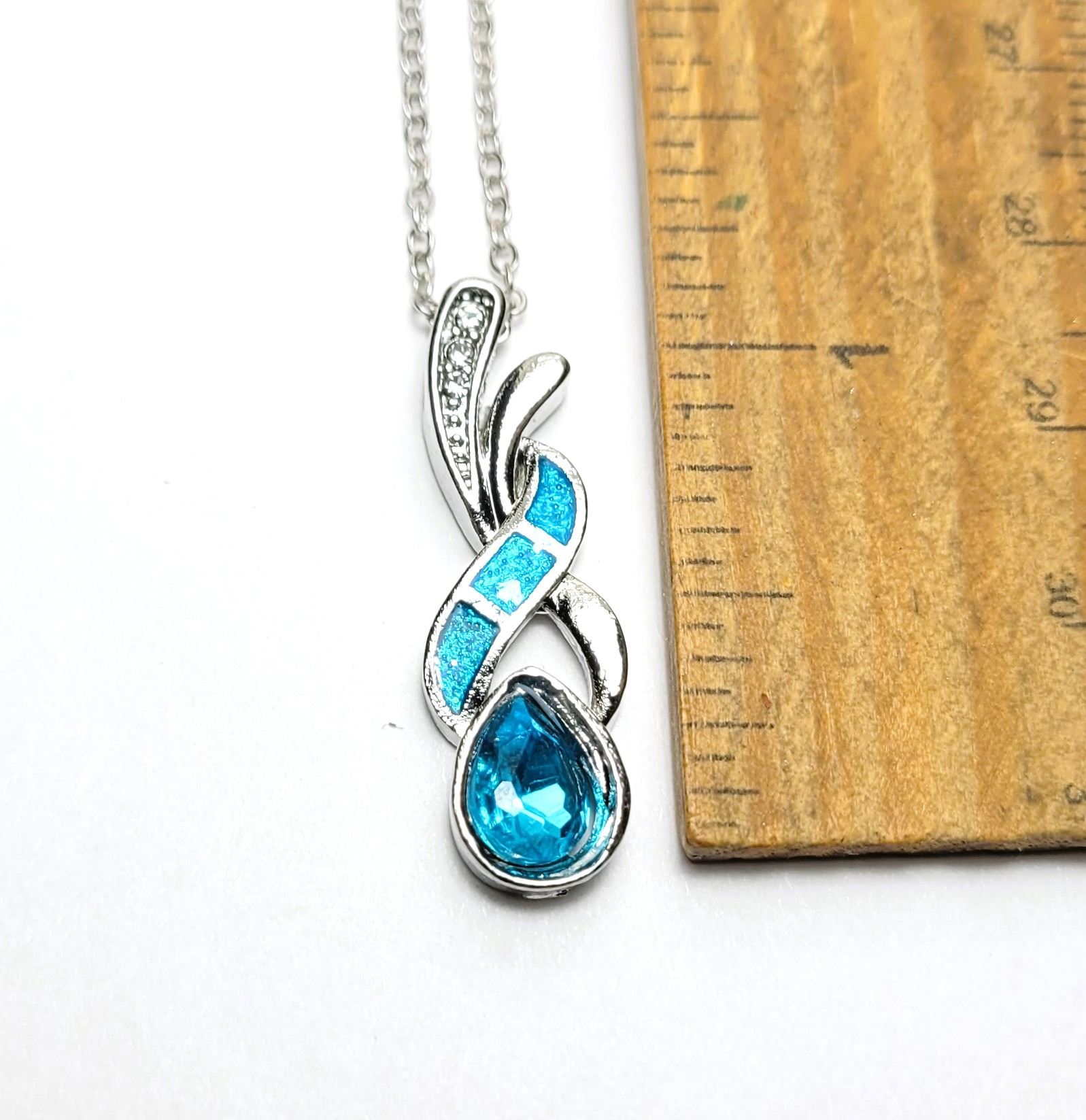AQUAMARINE WITH CLEAR CZ CRYSTALS PENDANT ON 17" CHAIN. JEWELRY