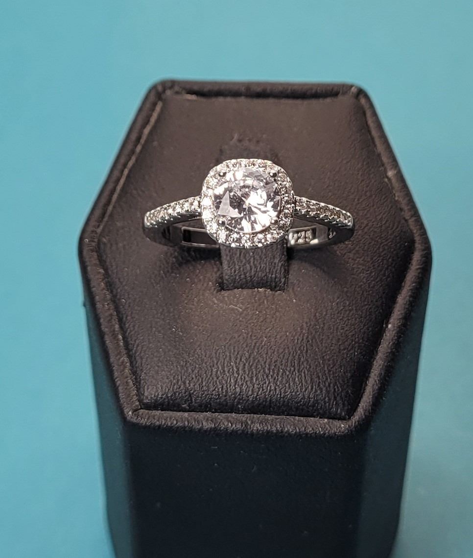 14) SQUARE CUT CLEAR CZ HALO RING,
