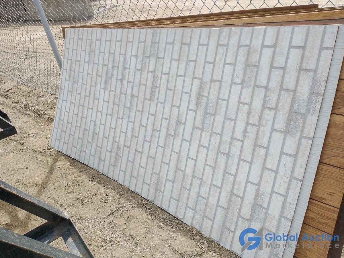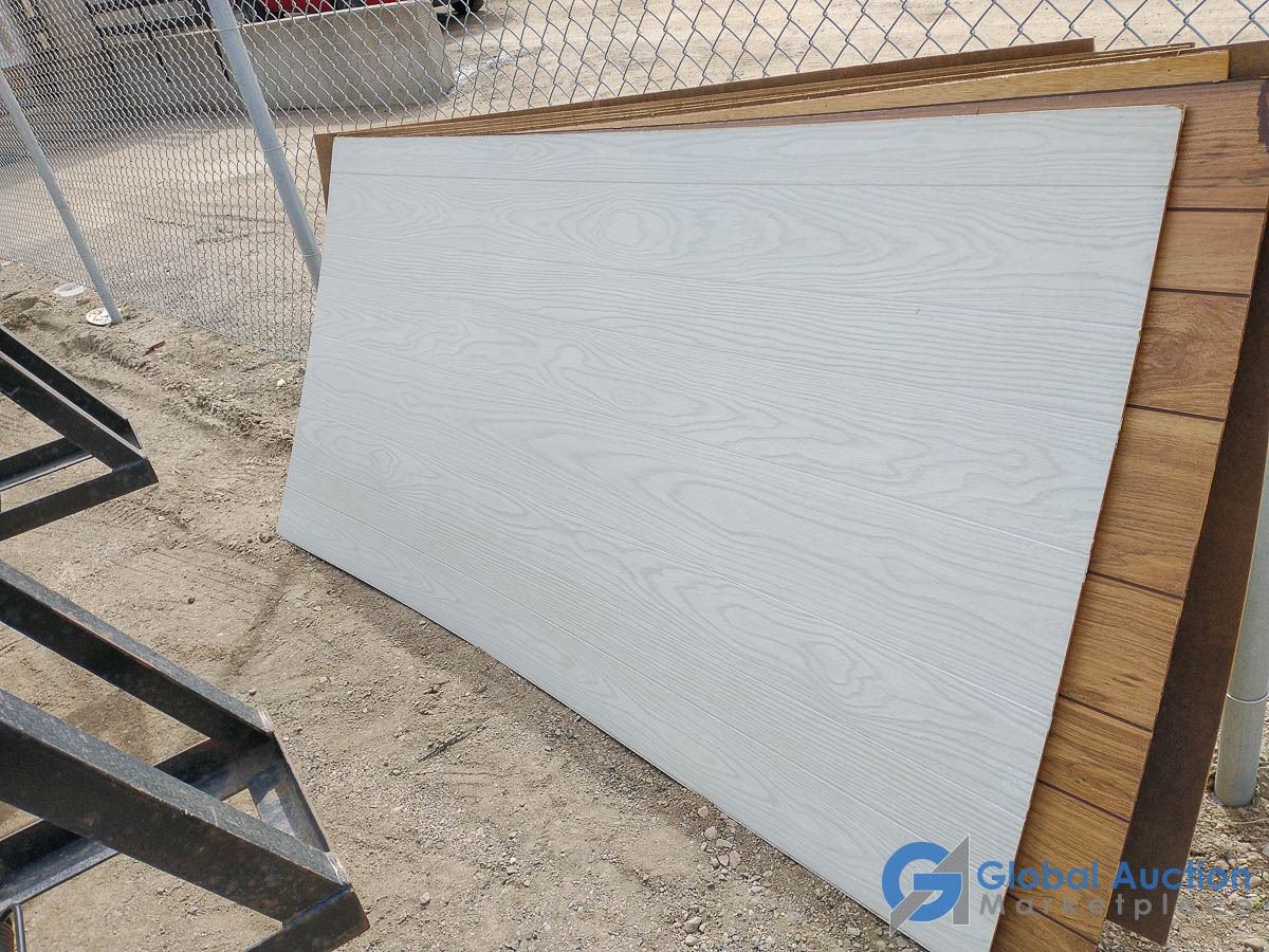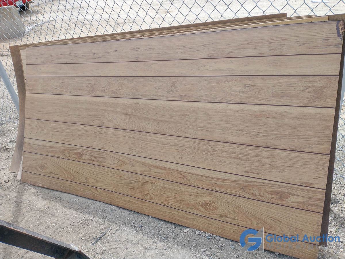 (6) Sheets Fibreboard Panelling, 1 Sheet Blonde Wood Grain Panelling, 1 Sheet Brown Wood Grain Panelling, (2) Sheets Brown Wood Grain Panelling, 1 Sheet White Wood Grain Panelling, 1 Sheet White Brick Pattern Panelling, 1 Sheet Blue/Green Wood Grain Panelling, 1 Sheet 1950's Diamond Texture Panelling