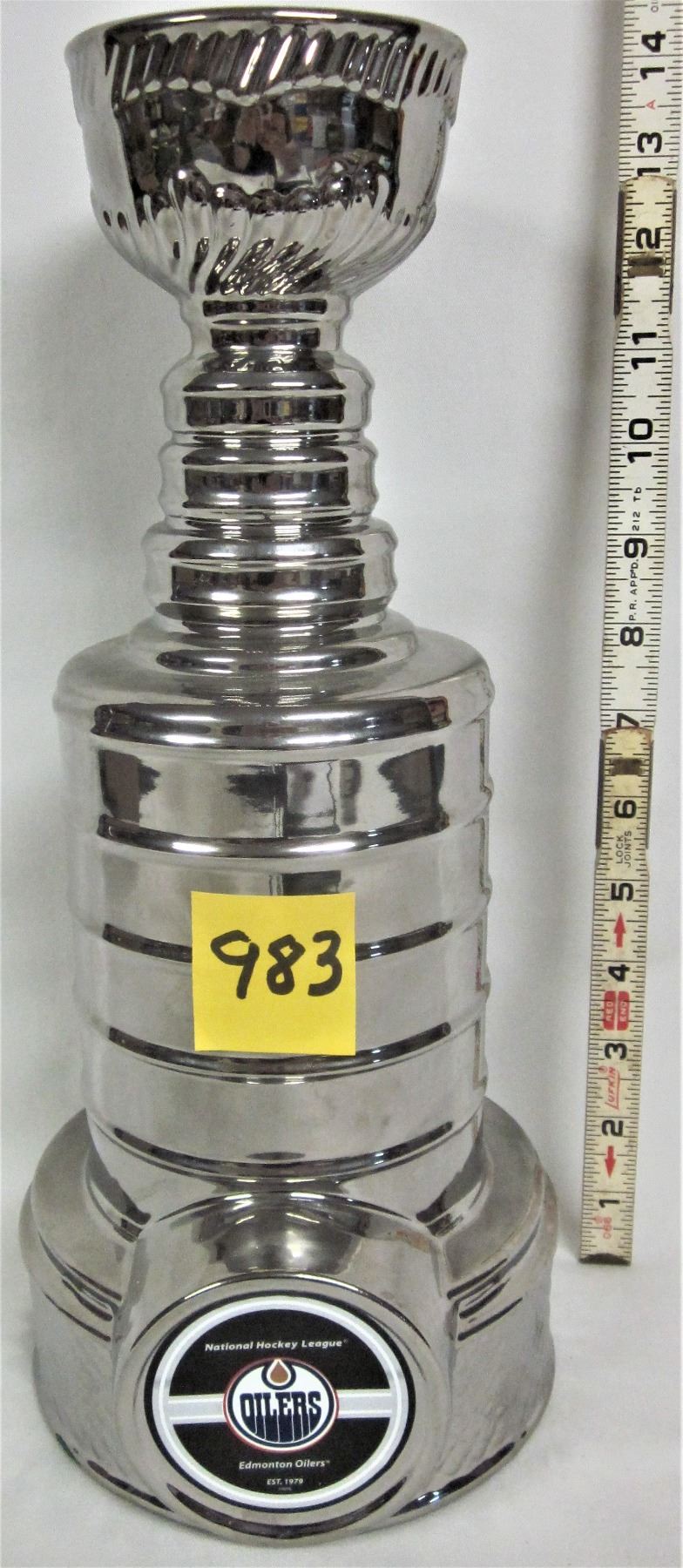 14" Silver Color Ceramic Edmonton Oilers STANLEY CUP Coin Bank