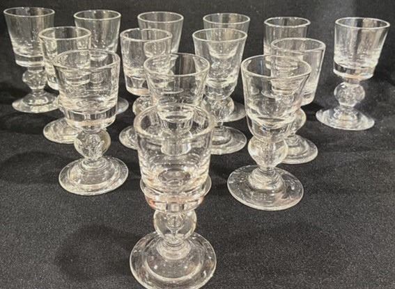 Steuben crystal aperitif glasses, tear drop bubble form.