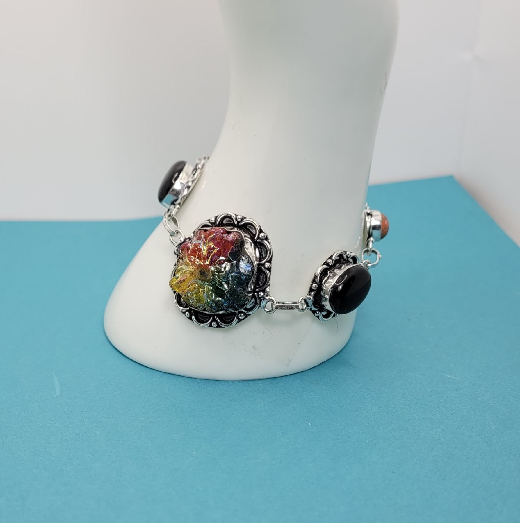 BLACK ONYX BRACELET WITH TOGGLE CLOSURE. JEWELLERY