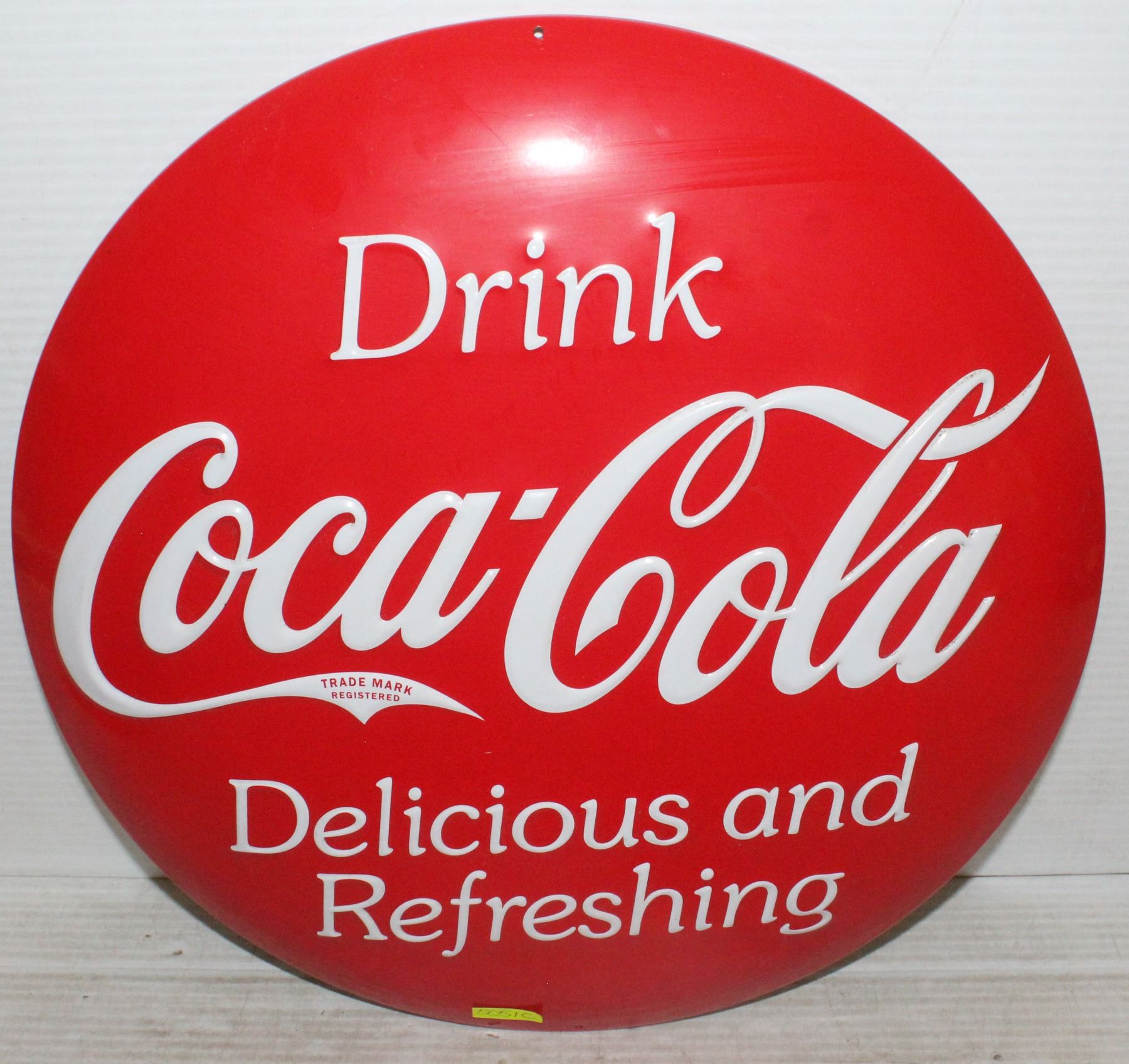 14" TIN COCA-COLA ROUND BUTTON SIGN, CONCAVE