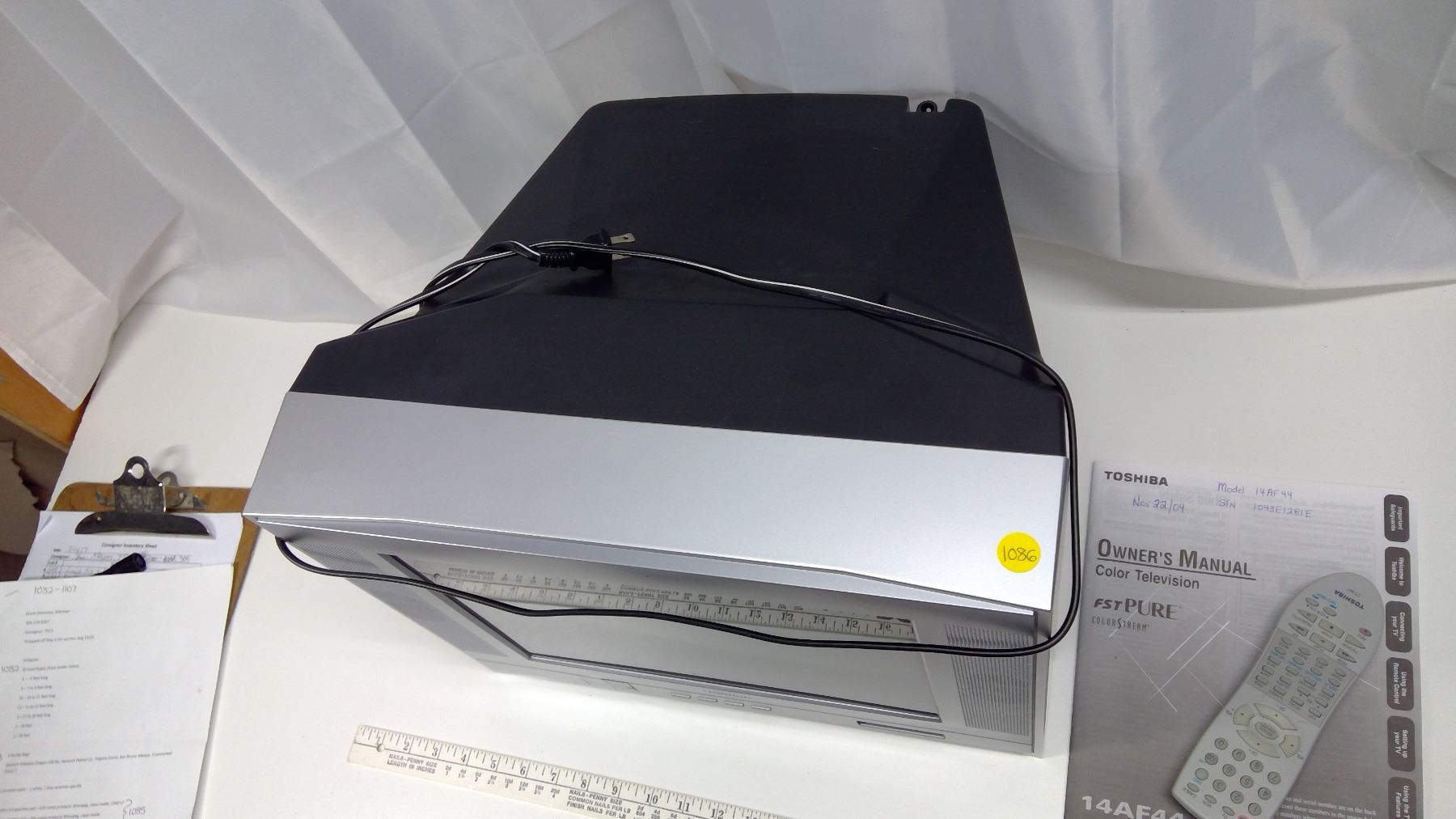 14” Toshiba Color TV; remote; manual; not a lot of use