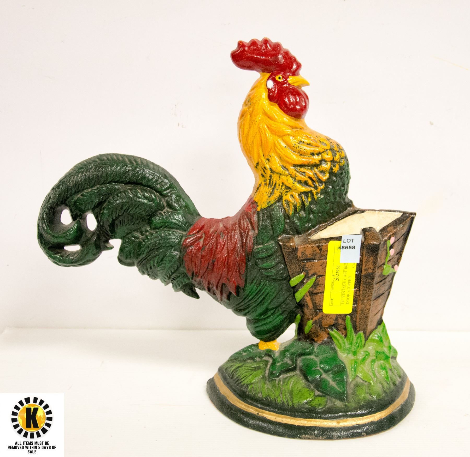 14" VINTAGE CAST IRON ROOSTER DOOR STOPPER