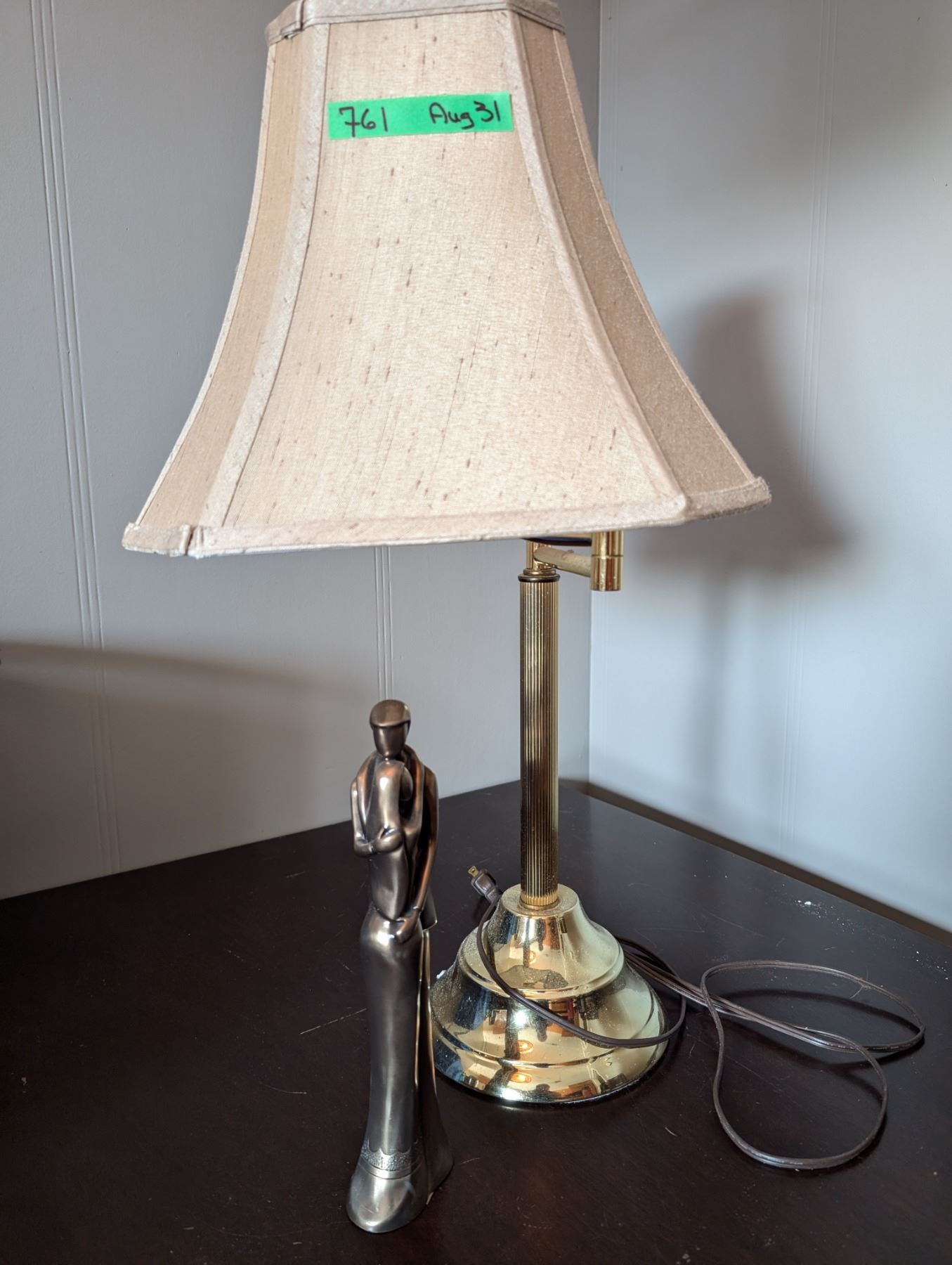 14" Wide x 24" High Brass Swing Arm Lamp with 10.5" High Statue