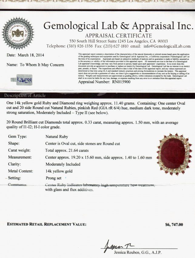 Regarding Appraised Jewelry and Loose Stones - Windsor Auction sends them out to a third party for Retail Replacement Value Appraisals, which are the most common. These types of evaluations are written for insurance needs. This would be the cost to replace the jewelry with an item of equal quality and kind, considered to be the current market price or the replacement value. This type of appraisal is done to protect you in the event of damage or loss of a valuable item. Our appraisals are conducted by independent 3rd Party appraisal firms that utilizes Certified GIA Gemologist. Appraisals should be used for verification of gemstone and/or metal weight, size, and grade only, not actual value. Appraisal value should be considered for insurance purposes only, not actual value, as price varies greatly from retail locations thru out the world. Items should not be purchased with the expectation to resell for appraisal price, or for profit.