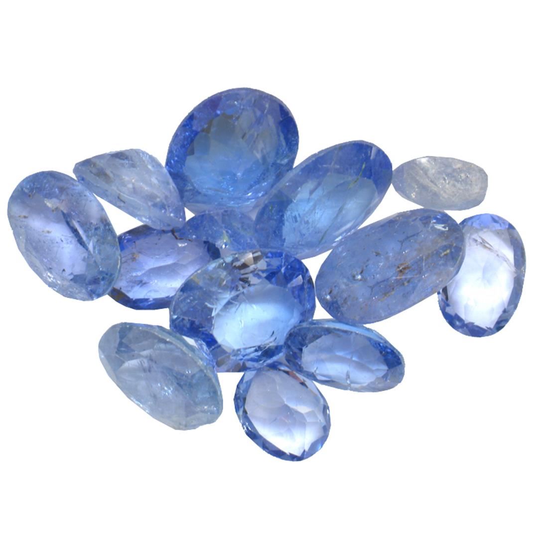 Twelve oval mixed cut natural tanzanites exact total weight 14.00ct., clarity is moderately included, type I, medium, very slightly grayish, bluish violet color, (GIA bV 5/3), cut is good. Transmitting light with a minimum of distortion, transparent. Naturally occurring internal & external characteristics are present. Color grade is an average for the group. Tanzanite is a very rare gemstone that is only found in the country of Tanzania. Originally discovered in 1967. Tiffany & Company, named the stone Tanzanite. It is found in the Usumburu Mountains that border the Umba Valley of northern Tanzania. Tanzanite occurs in gray, brown, violet, blue, reddish-purple, & green. The gem is interesting because of its exceptional pleochroism. Rotated in different directions a tanzanite will exhibit multiple changes of color. Tanzanite has a low tolerance to ultrasonic cleaning, and should not be cleaned using this method. Westfield Appraised at $1,345.00.