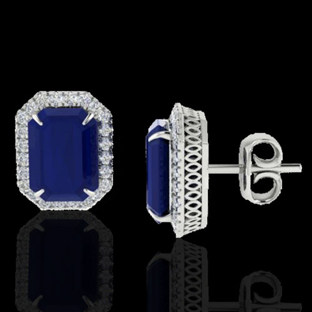 REF-136H4R - SKU: 21233 ---- 14 ctw Sapphire & Micro Pave VS/SI Diamond Earrings 18k White Gold