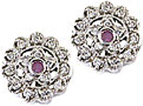 14 k White gold ruby and diamond cluster stud earrings (r - 0.10 cts tw / -d 0.50 cts tw) Appraised Value $2,300 (28856)
