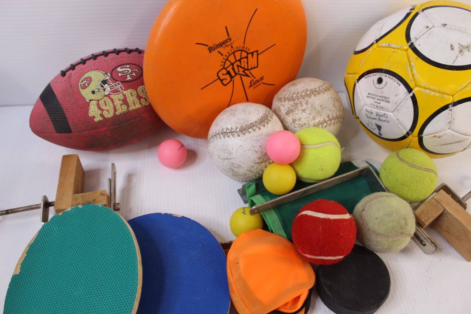 (14+) lot of: Ping Pong Set with Net; & Various Balls