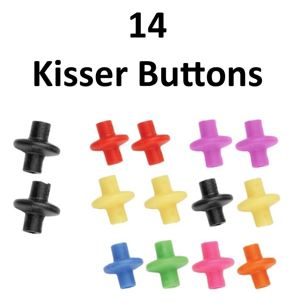 14 x Kisser Buttons, 2 x Saunders 16 -18 X-Large, 9 x Pine Ridge Slotted , 2-Red, 2-Purple, 2-Yellow, 1-Blue, 1- Green, 1-Pink, 3 x Pine Ridge Slide On, 1-Yellow, 1-Orange, 1-Black