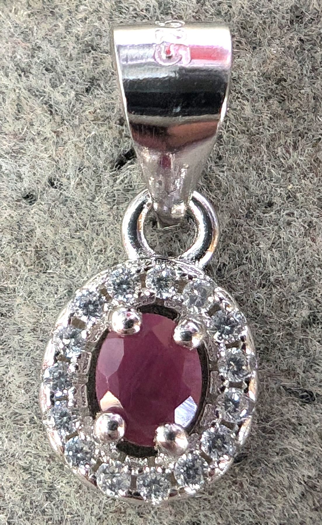 $140, SILVER RUBY AND CZ PENDANT, appraised/retail value $140