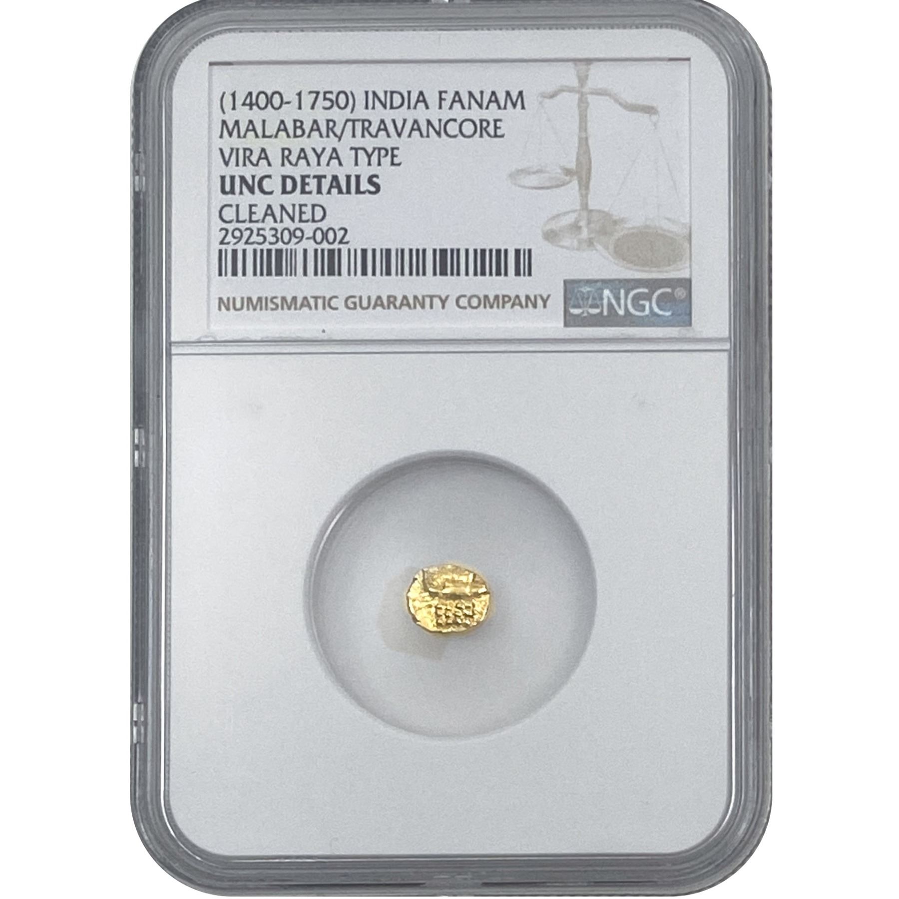 1400-1750 India Fanam Gold Coin Vira Raya Type NGC UNC Detail