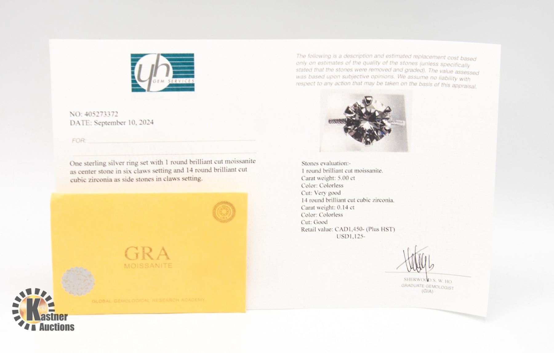 MOISSANITE STONE VVS D COLOR SET IN CENTER IN 925 SILVER RING SIZE 7 RETAIL VALUE $1,450.00 **ALL ITEMS MUST BE REMOVED BY 5PM SATURDAY, DECEMBER 21ST 2024. ALL REMAINING ITEMS WILL BE SUBJECT TO A $6.00 PER DAY STORAGE CHARGE. ANY ITEMS REMAINING AFTER MONDAY, JANUARY 6TH 2025 WILL BE CONSIDERED FORFEITED. NO REFUNDS WILL BE ISSUED FOR FORFEITED ITEMS. TO SCHEDULE A PICK UP APPOINTMENT CLICK HERE